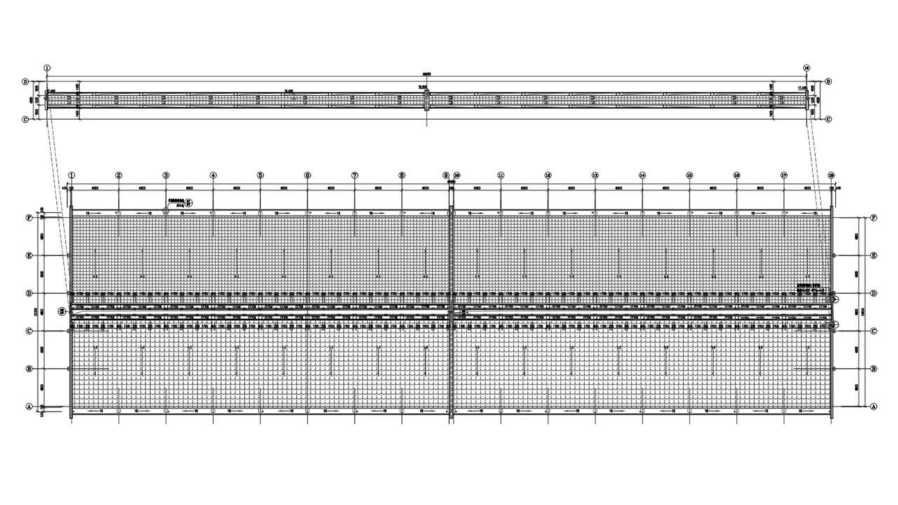 粮库单体建筑俯视图,采用多富瑞波形沥青瓦施工