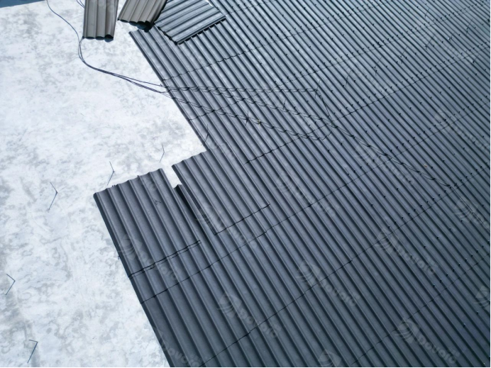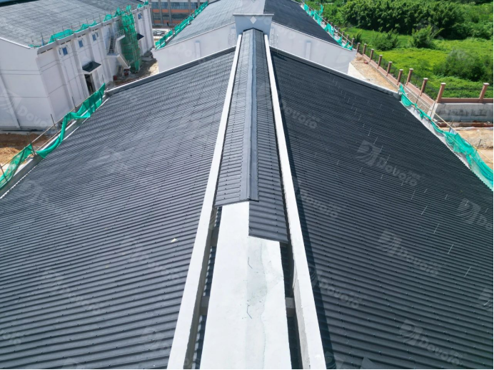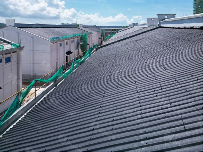 对于其独特的屋面通风结构,波形沥青瓦可完美适配。采用单张幻彩波形沥青瓦与脊瓦搭配,在不影响其通风效果的前提下,通过幻彩波形沥青瓦防排结合的设计,雨水汇入波谷,排至下层屋面,可有效防止雨水落入通风结构中。