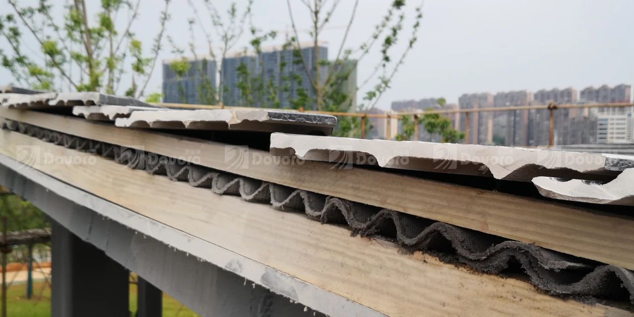 波形沥青防水板采用了与波形沥青瓦同样的防排结合设计。遇到极端降雨天气,一旦屋面瓦材发生渗漏,雨水也会顺着波形沥青防水板从上往下排出屋面,将屋面漏水的概率降至最低。