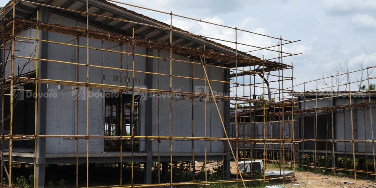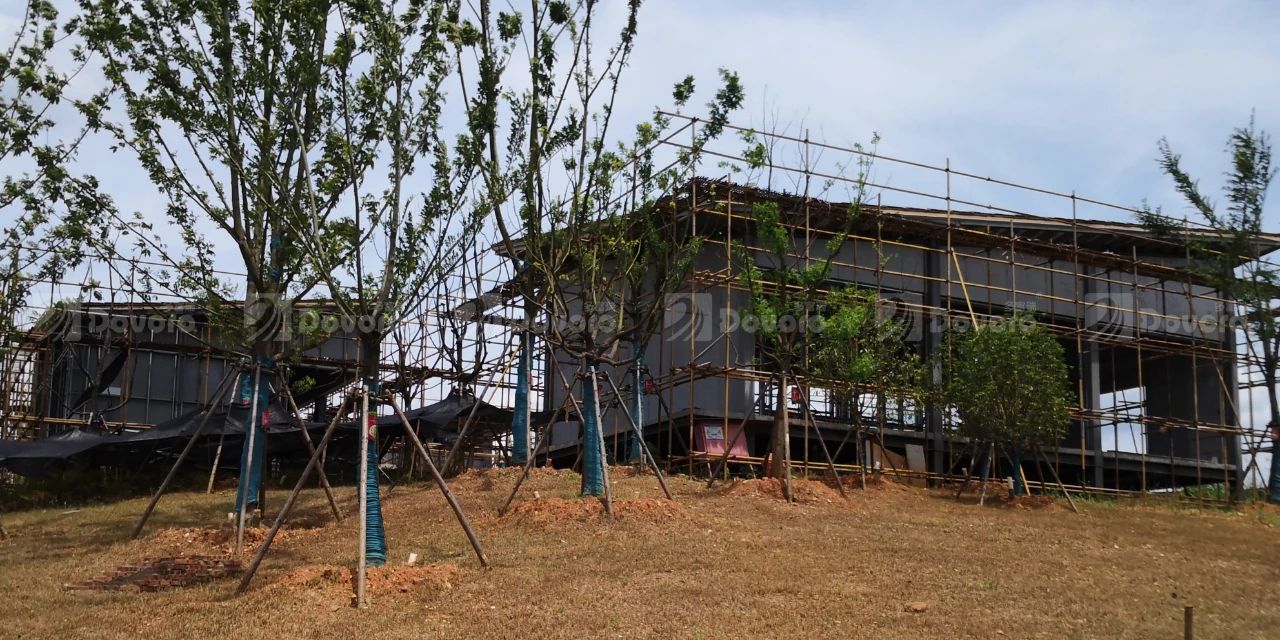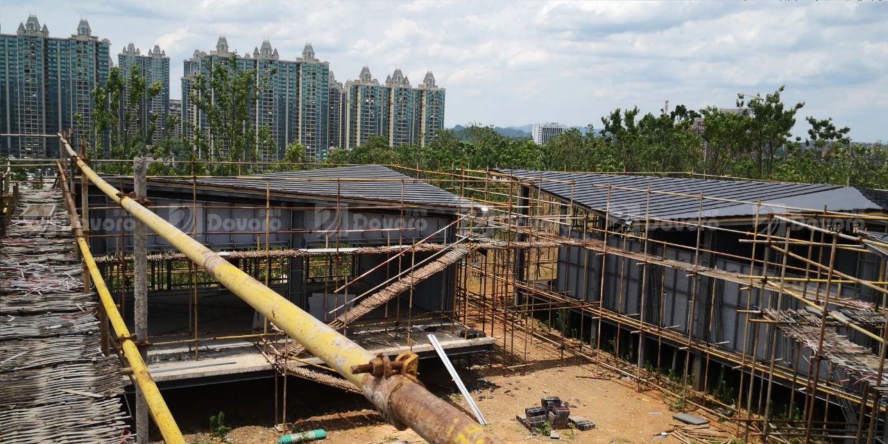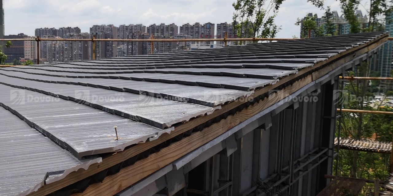 本项目中建筑采用钢结构装配式设计,波形沥青防水板可以在各类屋面基层上快速安装。