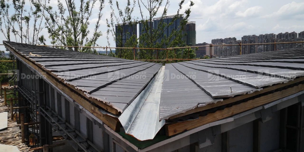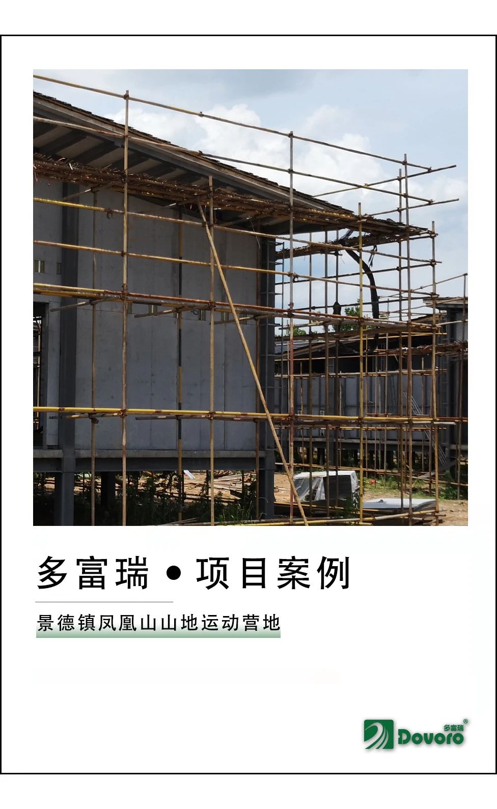 凤凰山山地运动营地位于江西省景德镇珠山区,是一个集休闲运动、野外露营、生态旅游为一体的城市公园。本项目使用波形沥青防水板作为瓦材下覆层施工,总施工面积约3500平米。
