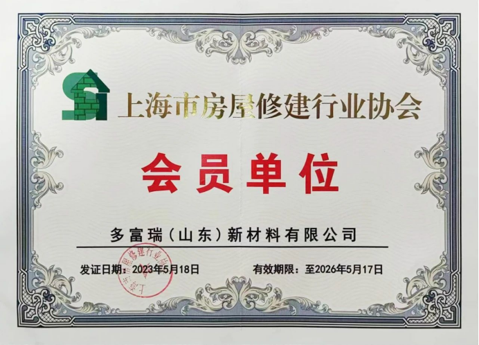 2月,加入上海房屋修缮协会和上海市房屋修建行业协会,体现多富瑞积极为客户提供高质量产品和全方位服务的决心、信心,同时也是提升产品知名度的重要举措之一。